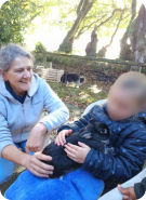 Nous fabriquons nous même les supports en lien avec les animaux présents et adaptés aux possibilités motrices des personnes.